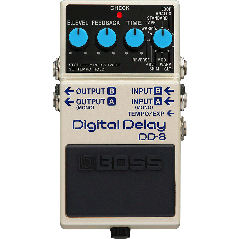 Introducing the BOSS DD8 Digital Delay, the most wide-ranging and feature-rich BOSS compact series delay ever. This loaded pedal delivers more of everything—more great sounds, more delay time, more control options, and more connectivity. And it does it all in a standard BOSS pedal that slides easily into any mono or stereo setup. Eleven modes provide delay colors from basic to exotic, plus a looper with unlimited overdub capability and external control support. For maximum versatility in a minimum amount of space, there’s no better delay stomp than the DD-8.