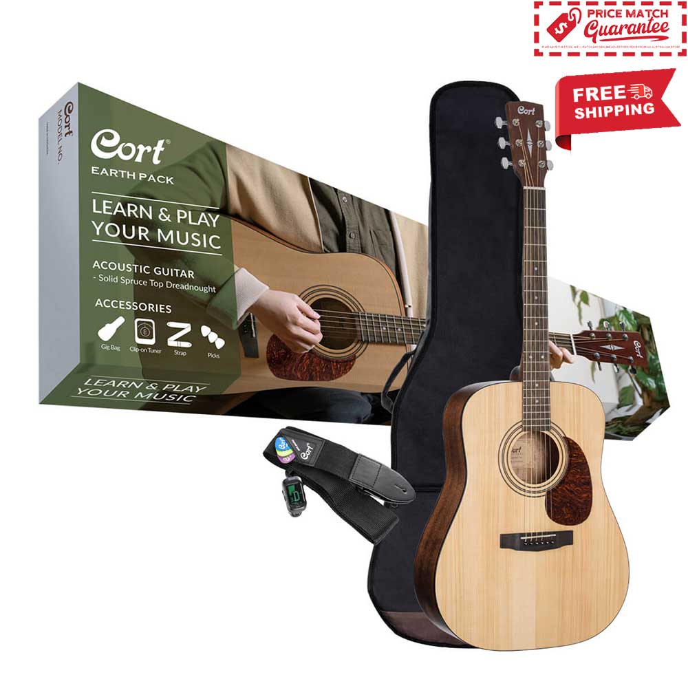 CORT Earth 60 Pack – Dreadnought Acoustic Guitar Starter Bundle