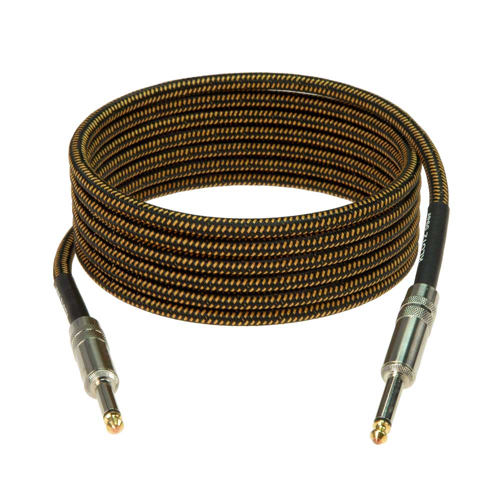 Inside the vintage tweed-style outer, you get ultra-low capacitance cable (around 115 pF/m) for a clear, open tone that keeps your highs intact, plus double shielding to keep hum and noise at bay – ideal for single-coil guitars and high-gain rigs.