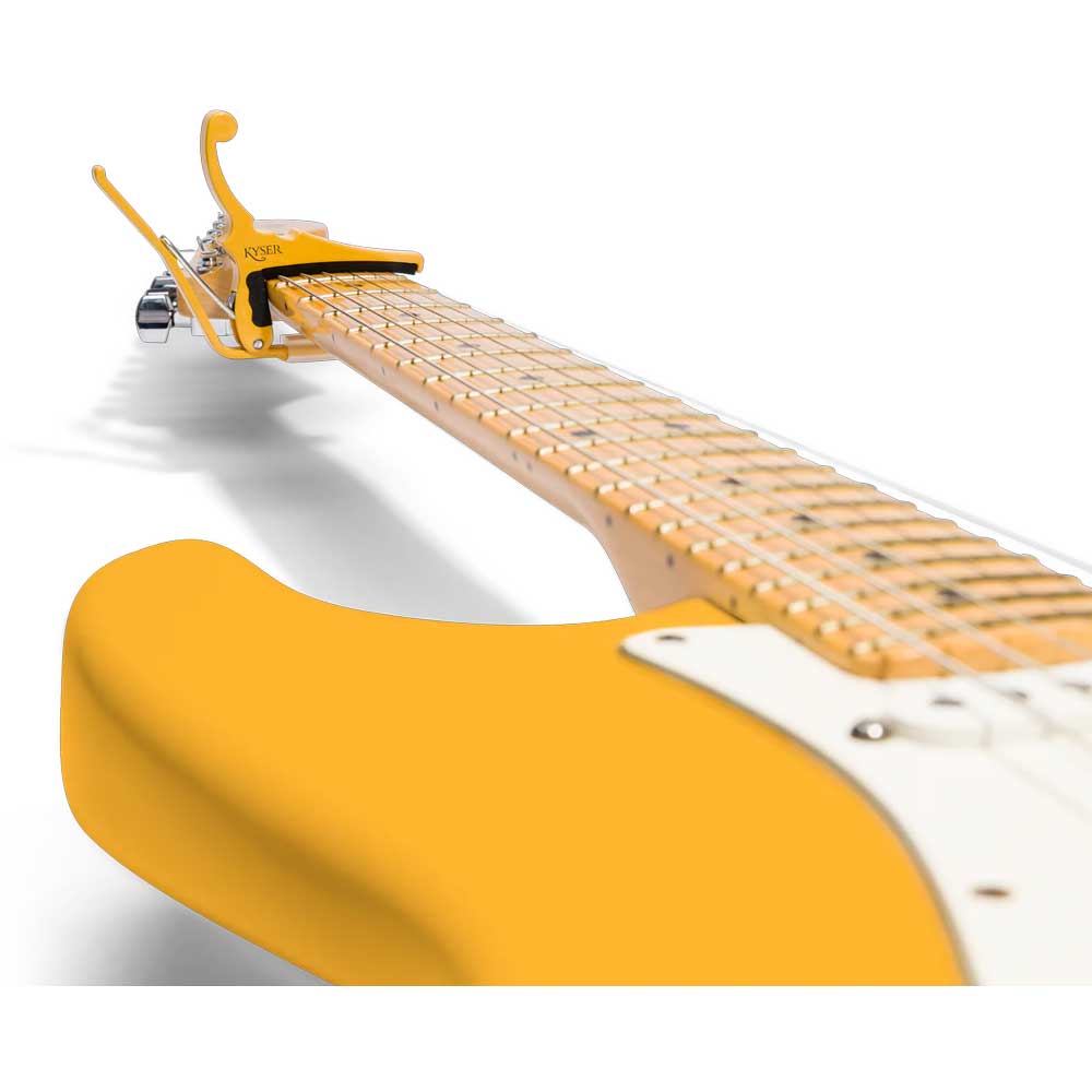Add classic Fender® style to your rig with the Kyser Quick-Change® Electric Guitar Capo in Butterscotch Blonde. This eye-catching capo is part of the official Fender x Kyser "Classic Colors" Series, celebrating timeless finishes with premium Kyser performance.