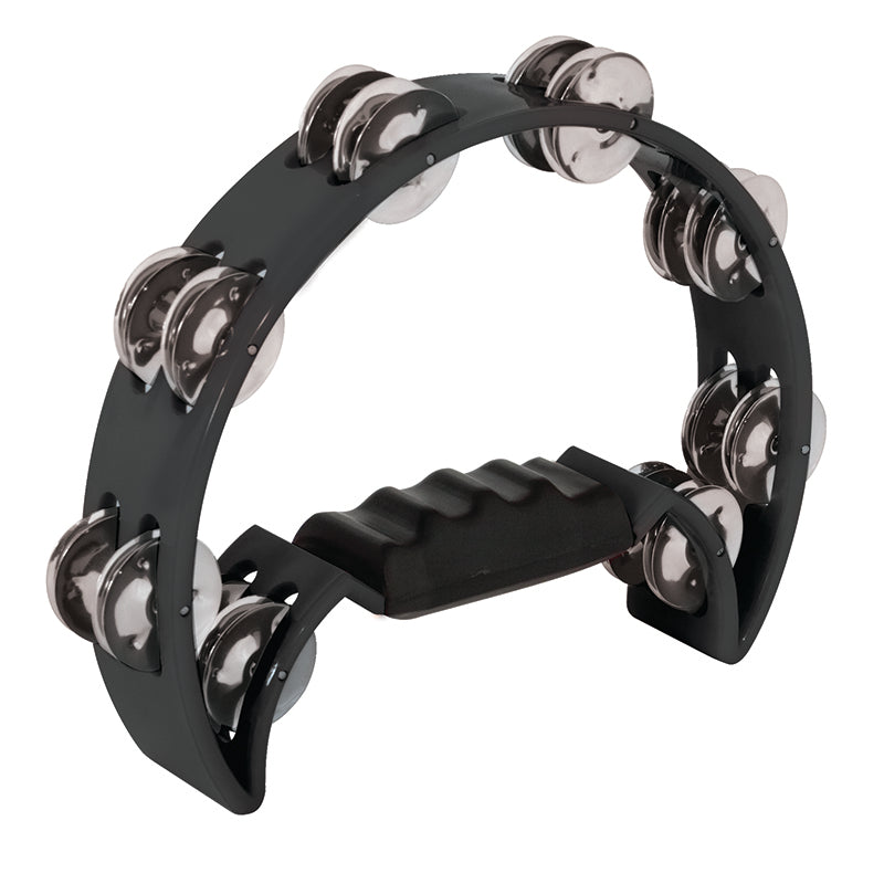 MANO PERCUSSION - 9" x 5" half moon tambourine. ABS rim. 16 pairs of nickel silver jingles in double row. Black.