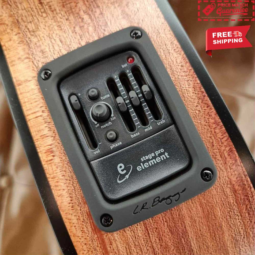 Fitted with the LR Baggs Stagepro Element system, this model is ready for live performance or studio work with clear, warm amplified sound and onboard tone controls. -