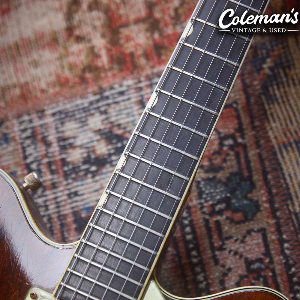 The double cutaway hollowbody construction provides improved upper-fret access while retaining the open, resonant character the Country Gentleman is known for. Hardware and electronics appear correct for the period, and the guitar is believed to be largely original, though we cannot definitively confirm whether the frets are original.
