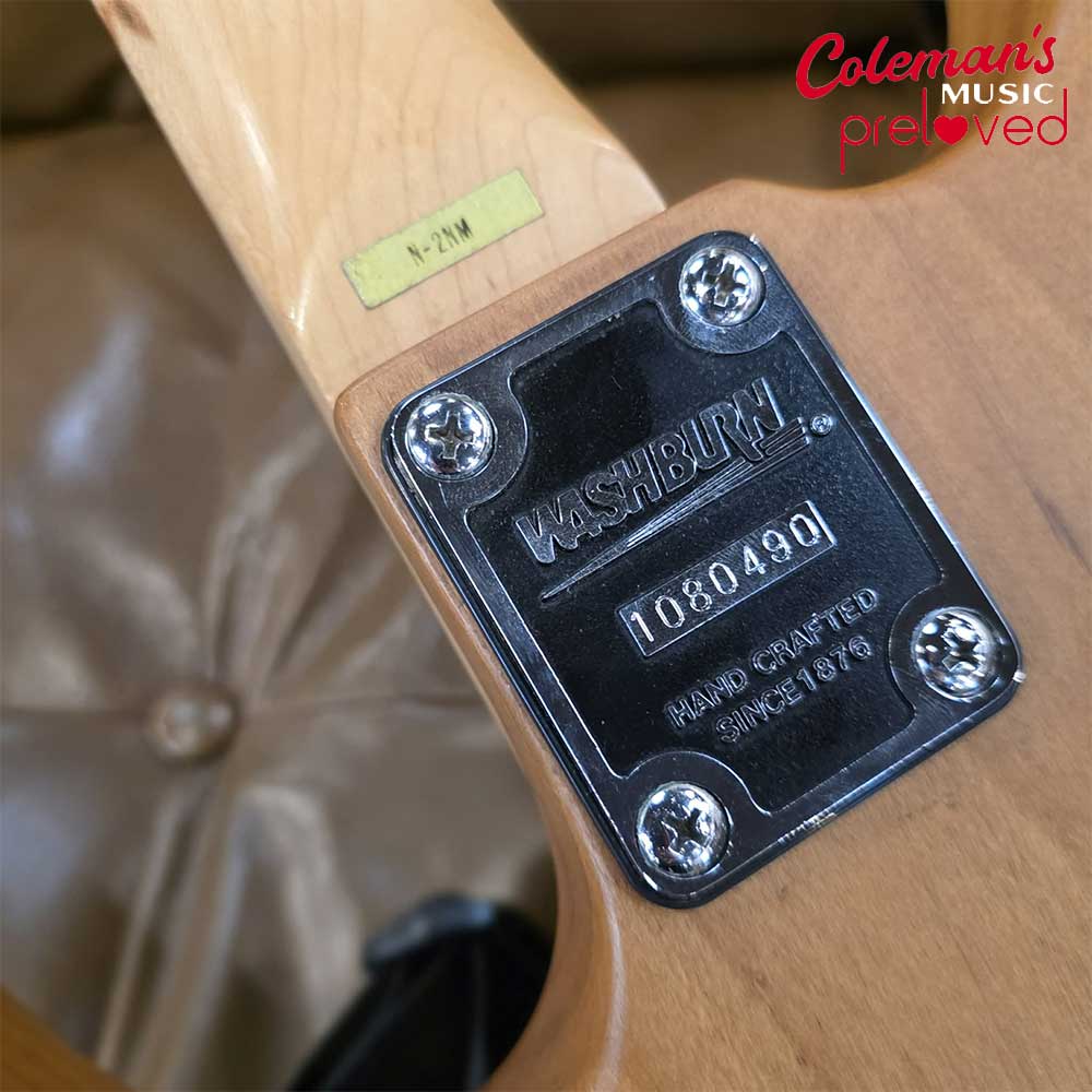 This Korean-made N2 is fitted with Washburn humbuckers for a tight, punchy voice that excels at chunky rhythm work and singing leads. The slim neck profile and comfortable body contours make it ideal for fast, expressive playing.